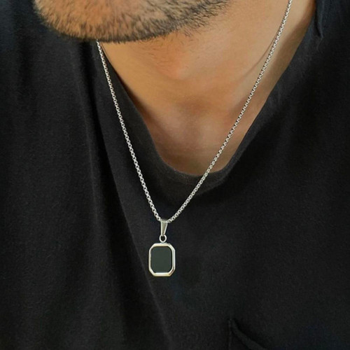 گردنبند مردانه استیل مربع مشکی
