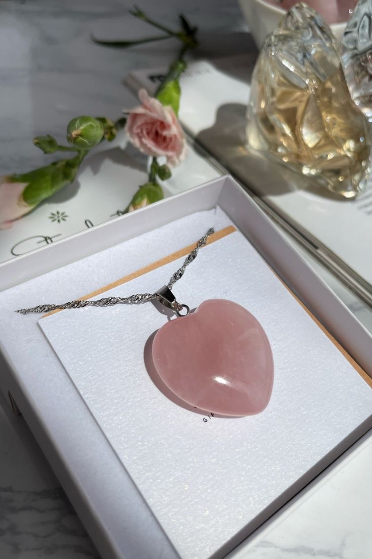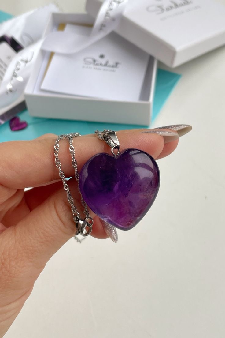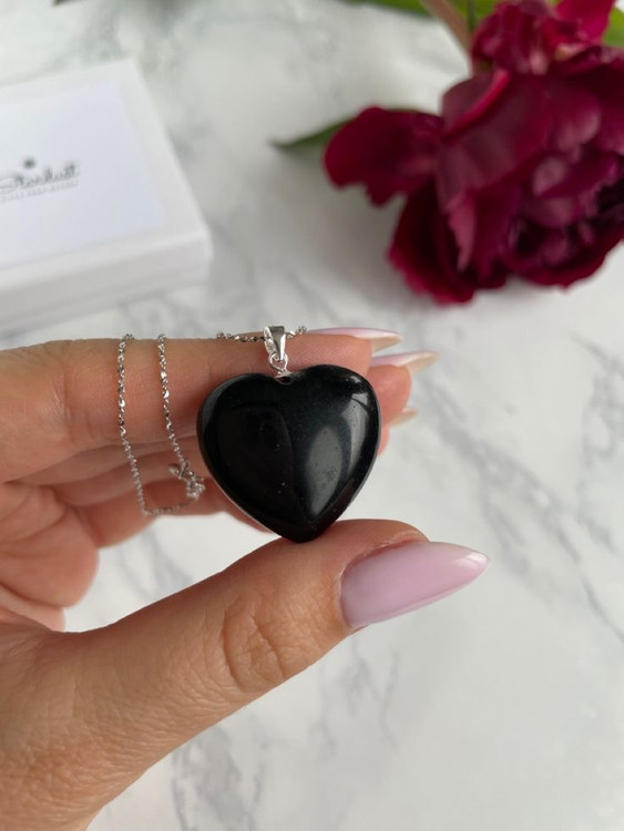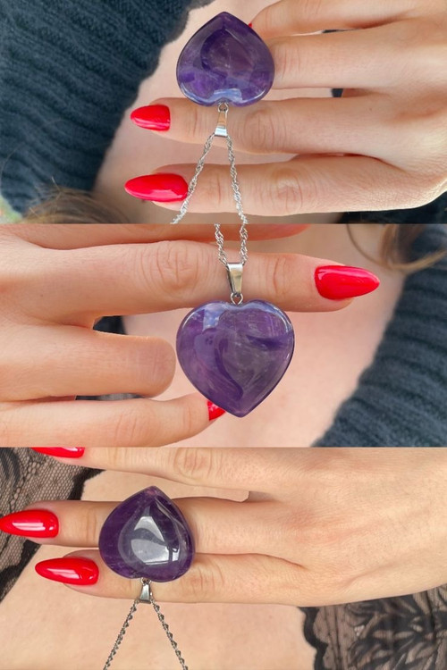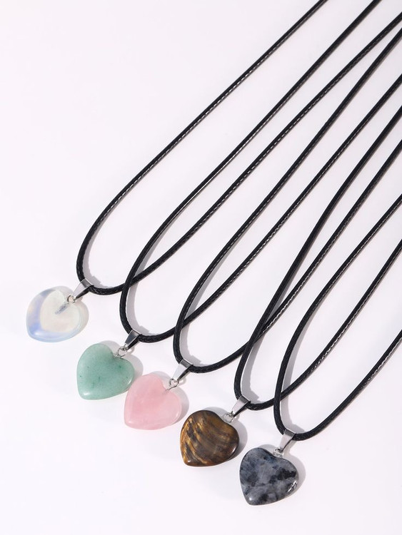 گردنبند قلب سنگ رنگبندی با زنجیر استیل