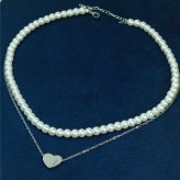 گردنبند دو لاین مروارید و استیل