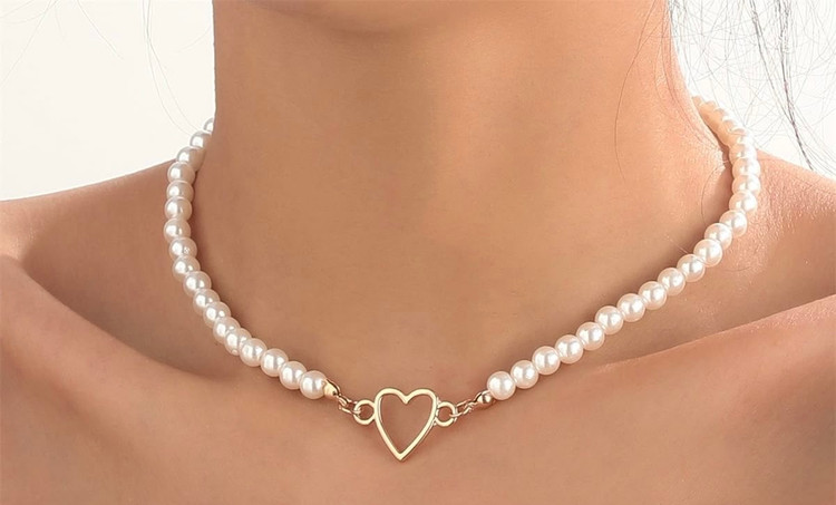 گردنبند مروارید با پلاک قلب
