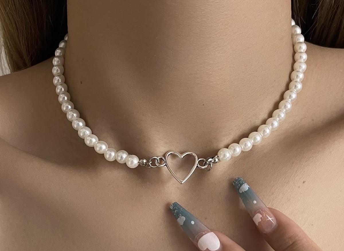 گردنبند مروارید با پلاک قلب